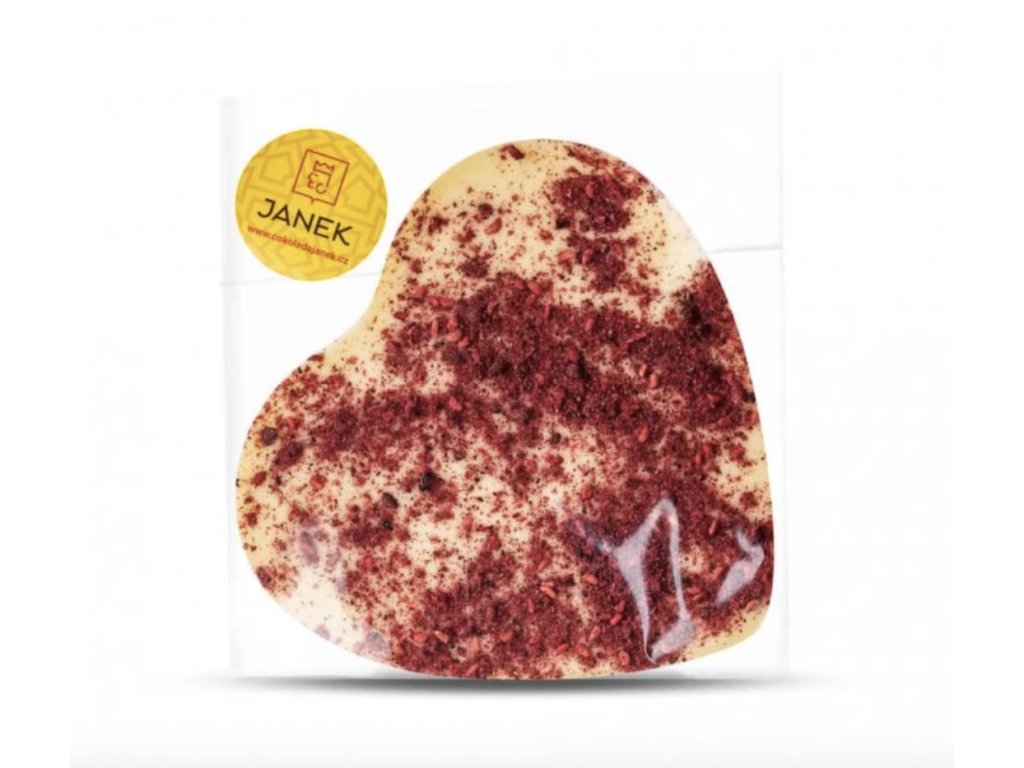 Velké čokoládové srdce z jemné bílé čokolády provoněné zrníčky pravé vanilky a k tomu lyofilizované maliny a lahodné ostružiny. Voní, křupe a zároveň se pomalu rozplyne na jazyku.