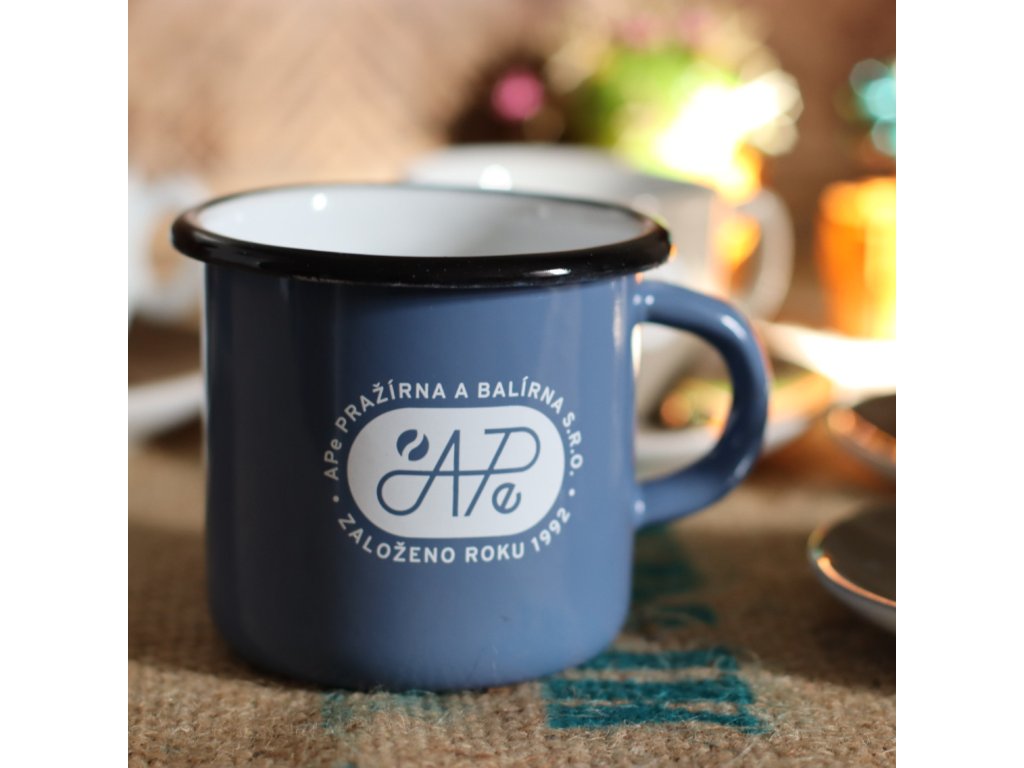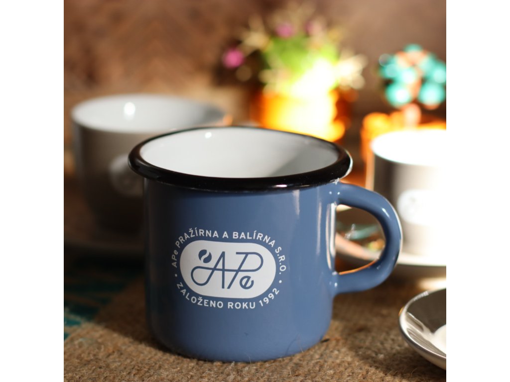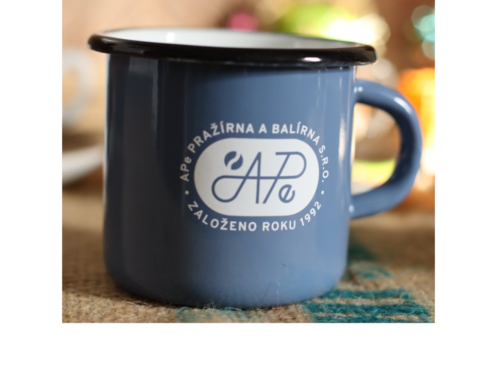 Vychutnejte si naši kávu z plechového hrnku s logem naší pražírny. Je též ideálním dárkem pro milovníky kávy.