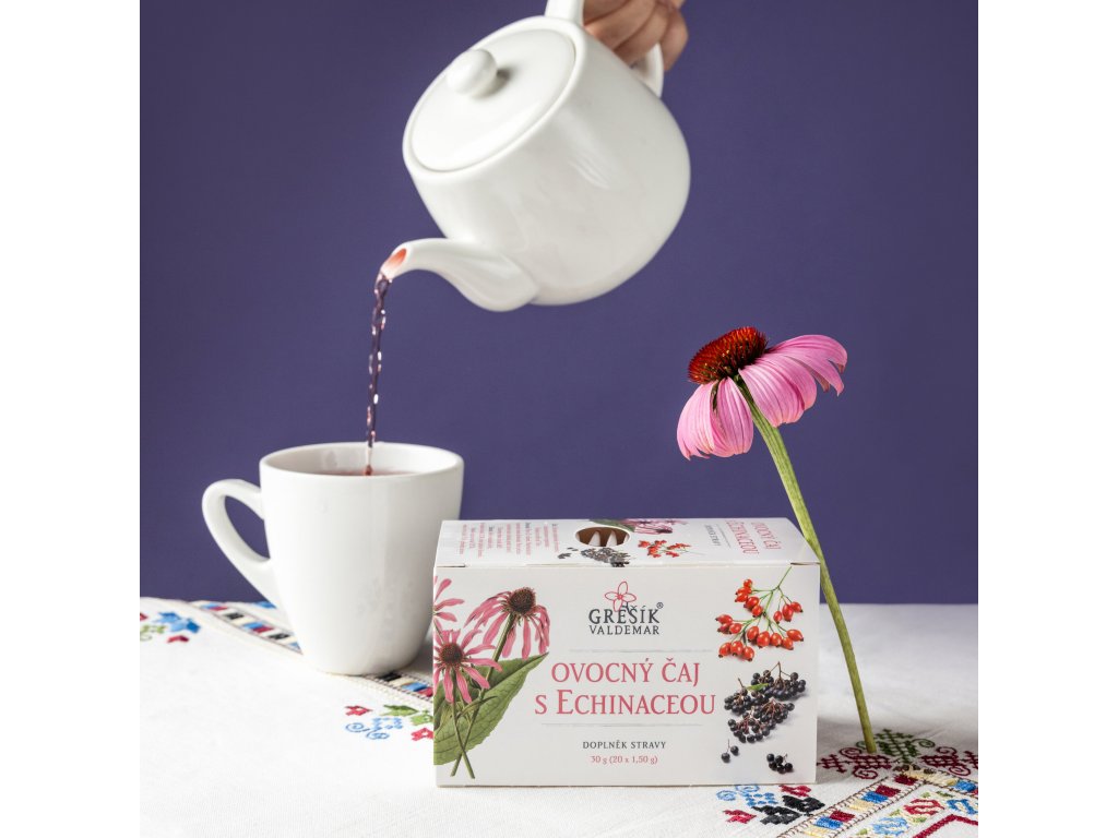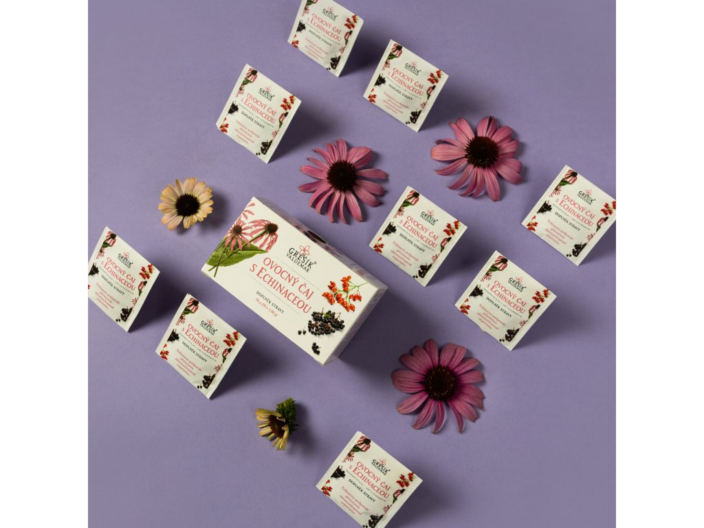 Ovocný čaj od české firmy Grešík je obohacený a Echinaceu. Ta napomáhá při podpoře přirozené obranyschopnosti organismu. Proto je tento čaj skvělý v zimě, kdy naše tělo častěji bojuje s nachlazením.