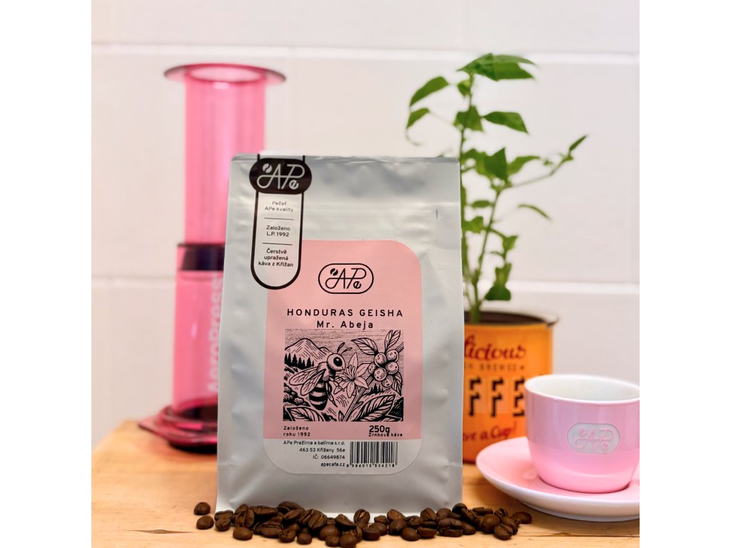 Díky tomu je chuť téhle kávy jemná, harmonická a elegantní, tak jako její patron Mr. Abeja (včela). Ten na ni usilovně a pracovitě dohlíží v obklopení omamných vůní sladkých květů s jemným bzukotem svých včelích pomocníků.