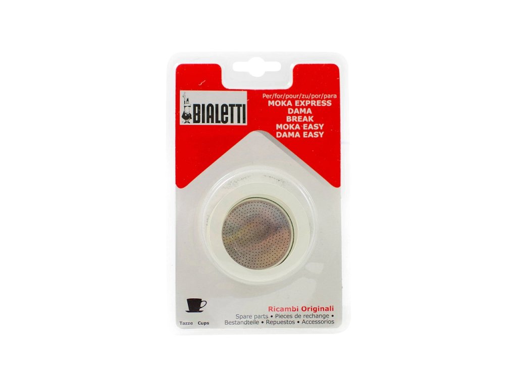 Sada gumových těsnění pro hliníkové moka konvičky Bialetti pro 6 šálků. Tato sada těsnění je kompatibilní s modely Moka Express, Damma a Fiametta na 6 porcí espressa. Balení obsahuje 3 vyměnitelná těsnění a sítko z nerezové oceli.