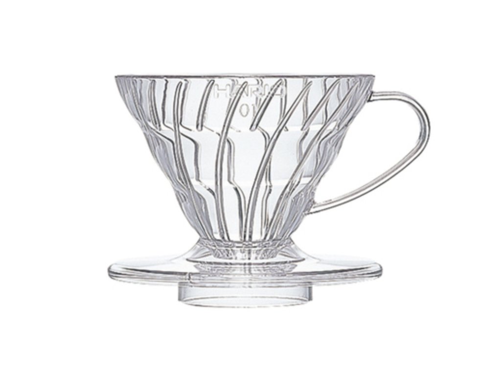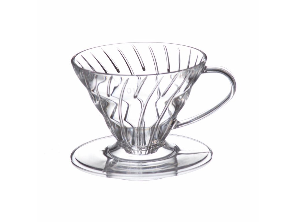 Dripper Hario V60-01 je vyroben z průhledného plastu, který usnadňuje údržbu a zaručuje minimální možnost poškození.