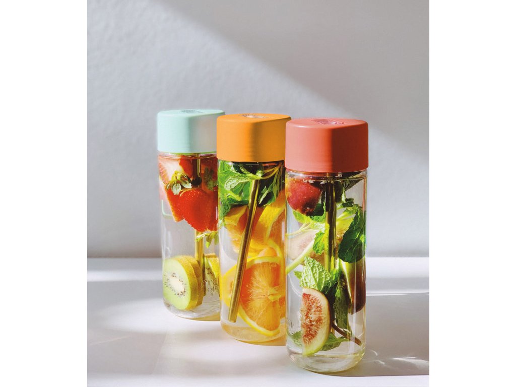 Pro ještě snadnější čištění je možné láhev vložit do myčky na nádobí. Perfektně jí to sluší i v kombinaci s ovocem a jako bonus se navíc vejde do všech držáků nápojů standardní velikosti.